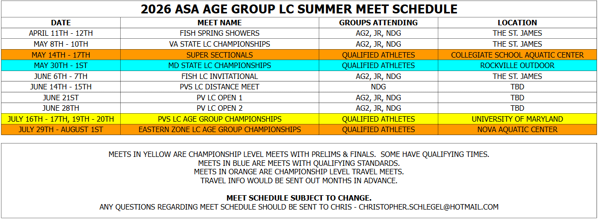 2026 ASA Summer Age Group Schedule